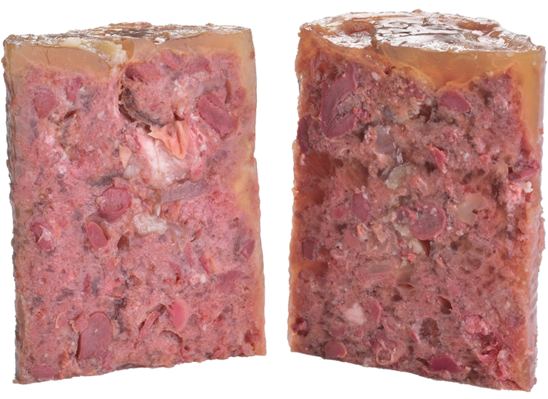 - De vrais morceaux de viande et d’abats en pâté.