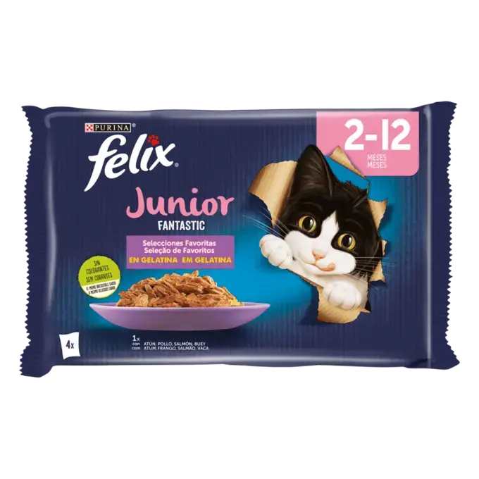 FELIX ® Fantastic Junior sont des repas qui ont l’air, l’odeur et le goût si délicieux qu’on pourrait croire que vous les avez cuisinés vous-même. Chaque recette, composée d’ingrédients de qualité, contient de tendres morceaux de gélatine succulente pour un repas savoureux que votre chat trouvera irrésistible. Ils ont aussi bon goût qu’ils en ont l’air !
