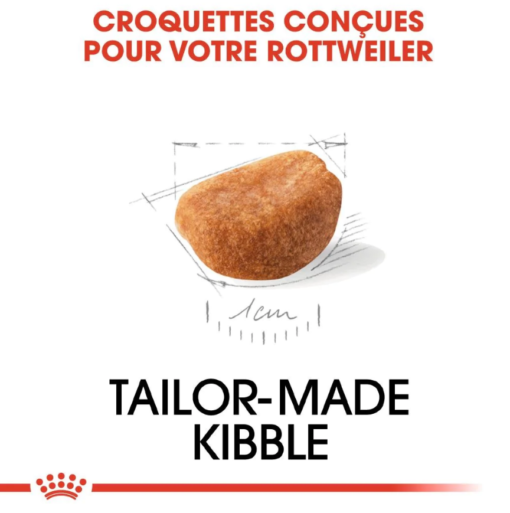 Une croquette exclusivement conçue pour faciliter la préhension et encourager la mastication chez le chiot Rottweiler.