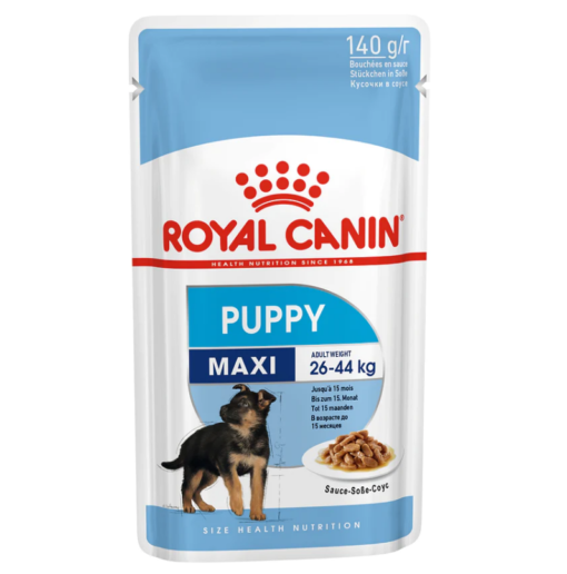 L’aliment humide ROYAL CANIN® Maxi Puppy Sauce est spécialement formulé pour répondre aux besoins nutritionnels des chiots de grandes races. Cette formule convient aux chiots de grandes races âgés de 2 à 15 mois qui devraient atteindre un poids adulte compris entre 26 et 44 kg. Cette formule sur mesure est composée de tendres bouchées en sauce dont la taille, la texture et le goût sont optimaux pour les chiots de grandes races en pleine croissance. Les tendres bouchées en sauce sont enrichies en acides gras oméga-3 (dont le DHA), scientifiquement prouvés pour contribuer au bon développement cérébral et à la santé visuelle des chiots. Grâce à une combinaison de prébiotiques bénéfiques (tels que les FOS et les MOS) et de protéines hautement digestibles, ROYAL CANIN® Maxi Puppy Sauce soutient le développement du microbiote intestinal de votre chiot et favorise son équilibre pour lui assurer une bonne santé digestive. L’aliment humide ROYAL CANIN® Maxi Puppy Sauce contient des nutriments tels que la vitamine C et E pour aider les chiots à soutenir leurs défenses naturelles et favoriser le bon développement de leur système immunitaire encore immature. ROYAL CANIN® Maxi Puppy Sauce a été élaboré pour satisfaire le palais des chiots les plus exigeants. Cette nourriture humide offre à votre chiot une expérience sensorielle agréable, favorise une bonne hydratation. Elle s’associe idéalement avec les croquettes ROYAL CANIN® Maxi Puppy. À l’âge de 15 mois, vos chiots auront besoin d’une alimentation spécialement adaptée leur permettant de répondre aux besoins nutritionnels de chien adulte. À ce stade, vous pouvez commencer la transition vers l’aliment ROYAL CANIN® Maxi Adult, disponible sous forme de croquettes. Tous les aliments humides de notre gamme croissance sont formulés sans conservateurs ni colorants artificiels.