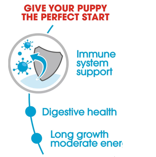 Aide à soutenir le développement du système immunitaire du chiot grâce à la présence d’un complexe scientifiquement prouvé, comprenant les vitamines E et C.