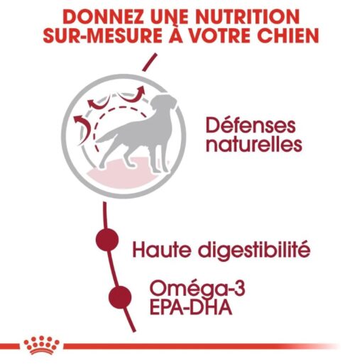 Aliment complet pour chiens adultes de taille moyenne (de 11 à 25 kg) – De 12 mois à 7 ans.